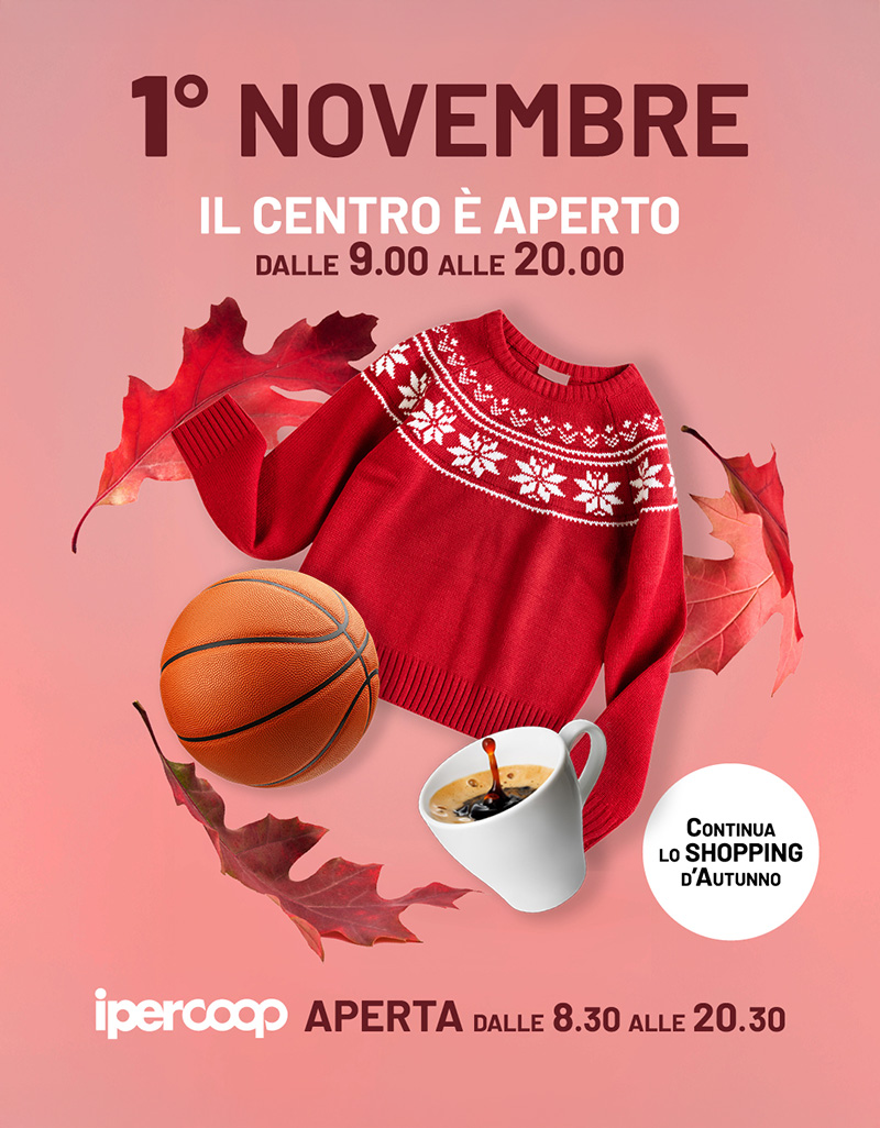 Anche venerdì 1° novembre, il nostro centro commerciale ti aspetta per una giornata di relax e shopping.