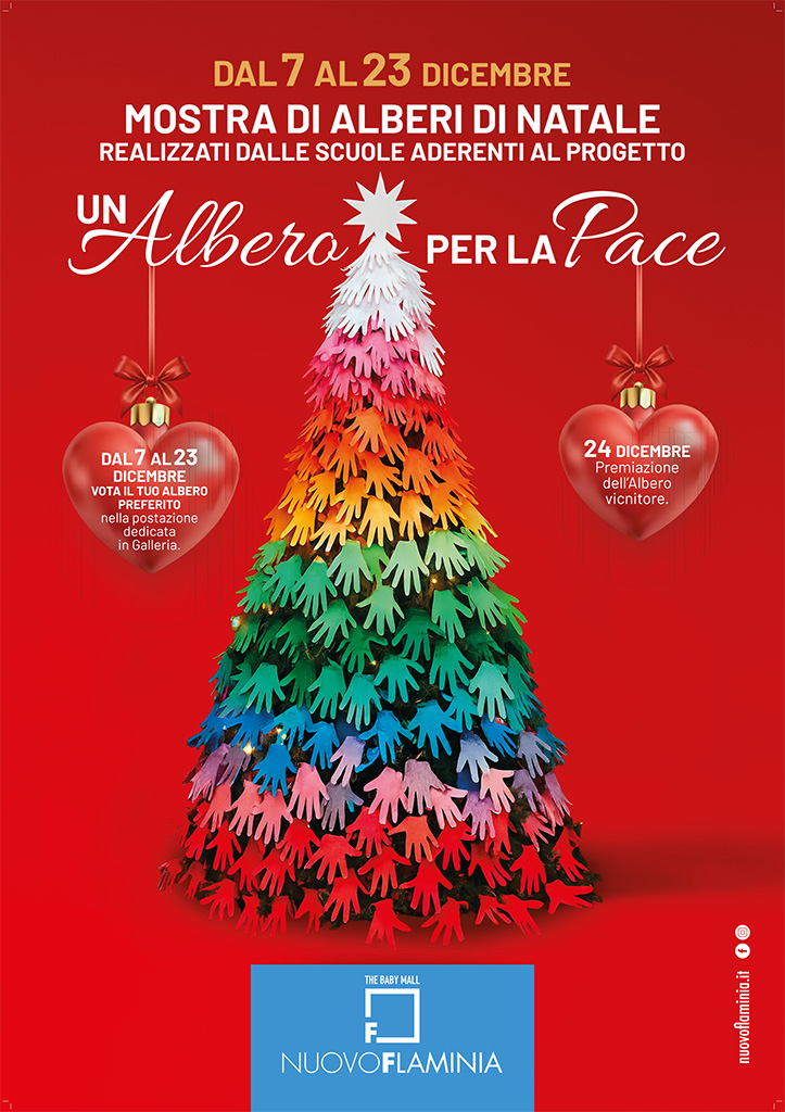 Dal 7 al 23 dicembre il Centro Nuovo Flaminia presenta la mostra “Un Albero per la Pace”, con alberi di Natale realizzati dalle scuole e votazione del pubblico in galleria; la premiazione dell’albero vincitore sarà il 24 dicembre.
